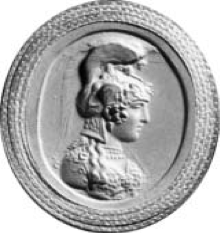 Figure 3: Head of the Athena Parthenos, signed by Aspasios, mid-first century CE. Plaster impression of red jasper, 3.9 3.4 cm. London: Victoria and Albert Museum (original in Rome: Museo Nazionale). Photo: Beazley Archive, University of Oxford, Robert Wilkins.