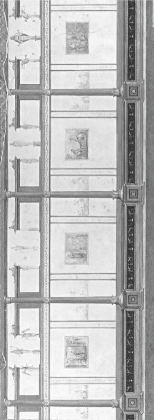Figure 6: Cryptoportico A, northeastern wall, watercolour of G. Massuero. Rome: Museo Nazionale Romano, Palazzo Massimo, inv. 1780. From Maria Rita Sanzi di Mino, ed., La villa della Farnesina.