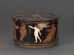 Figure 7: Pyxis with Eudaimonia and Himeros. From Eretria, ca. 400 BC. London, British Museum, inv. E 775. © Trustees of the British Museum.