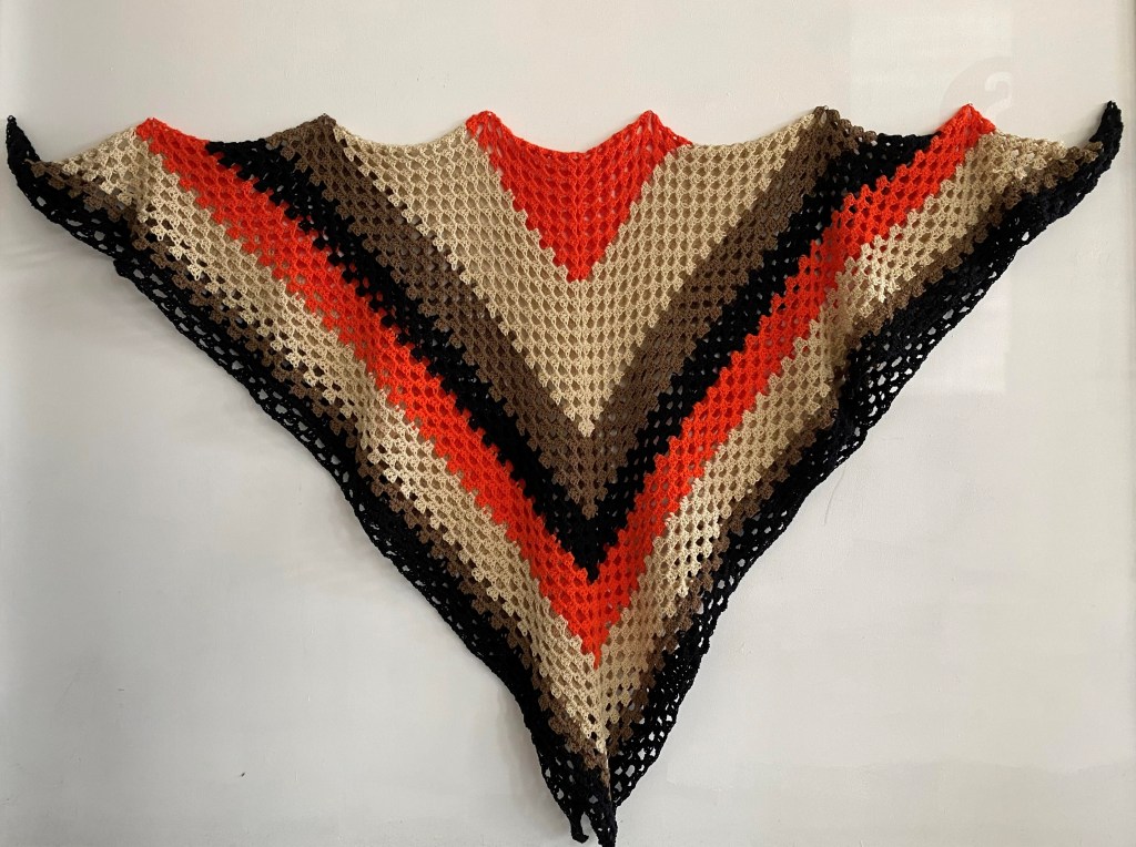 Artist Statement: In Breaking Bad, the main character’s couch has a blanket on it, and it is visible in several episodes. I came across the pattern online and decided to crochet it. Now it is laying on my couch at home, the same way it is in Breaking Bad.
