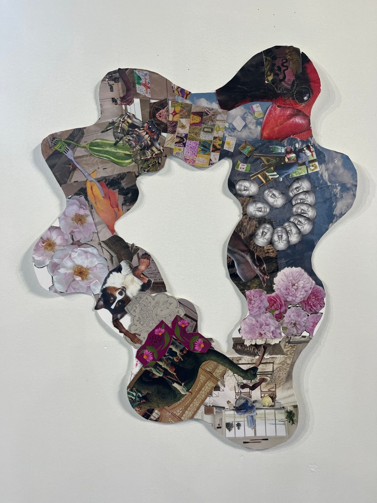 For this surrealist collage, I tried to create layers of different worlds that felt as unimaginable as possible. I blended natural creatures with human environments and vice versa. I created a story that could be read like a dream from the center and around its hazy wave.