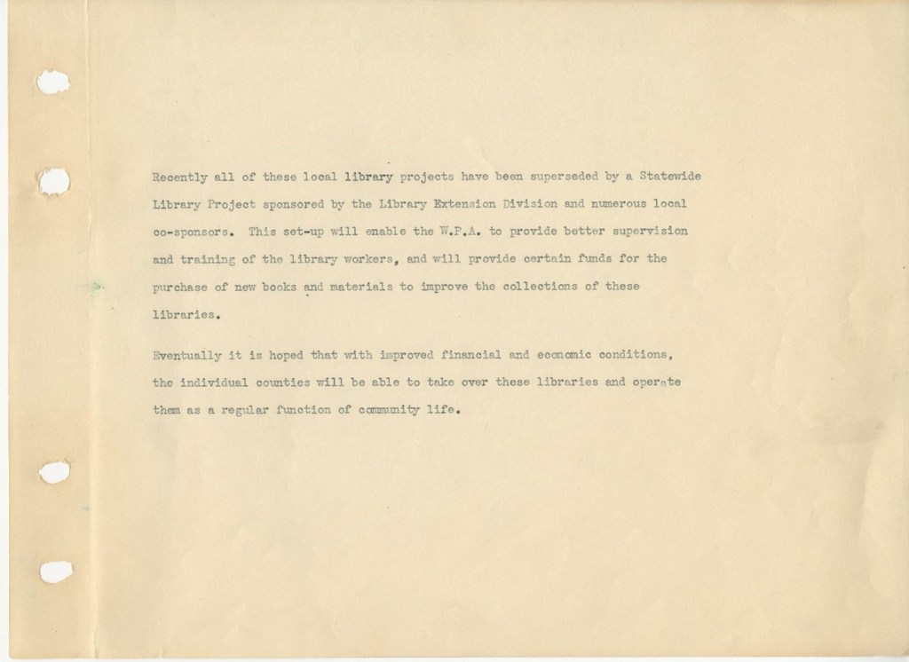 Chapman, Edward A. “WPA and Rural Libraries.” Bulletin of the American Library Association, vol. 32, no. 10, (1 Oct.) 1938, pp. 703-709. JSTOR, http://www.jstor.org/stable/25689501. Accessed 20 Nov. 2023.